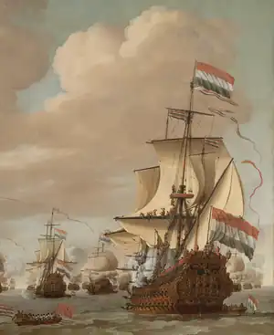 The Gouden Leeuw (Dutch: Golden Lion) was a Dutch ship of the line armed with 80-82 cannon. The ship was built for the Admiralty of Amsterdam in 1666 during the Second Anglo-Dutch War. The Gouden Leeuw was for a time the largest Dutch warship. During the Third Anglo-Dutch War, the ship served as the flagship of Lieutenant Admiral Cornelis Tromp.[1] She was Tromp's flagship at the Battle of Texel in 1673, with the Irishman Thomas Tobiasz as his flag captain. She was broken up in 1686.[2]