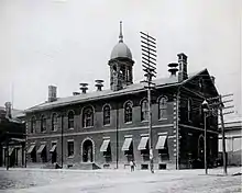 The first was authorized by the provincial assembly in 1717 and built in 1720, and would host New York's debate on ratifying the U.S. Constitution during the brief period when Poughkeepsie served as the state capital in 1788. It was destroyed in an 1806 fire. Three years later the state legislature appropriated funds for a new one, which stood for almost a century. An early tenant beside the courts was brewer Matthew Vassar, later founder of Vassar College, who ran an alehouse and oyster bar in the basement.[3]