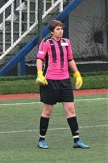 Duygu Yılmaz (born May 3, 1988) is a Turkish women's football goalkeeper, who plays in the Turkish Women's Super League for Fatih Karagümrük with jersey number 1. She was a member of the U-17, U-19 and Turkey women's national team.[1]