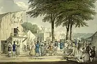 Open to the general public once again, Dyrehavsbakken began to flourish. Entertainers, hawkers, and innkeepers returned to the area, and Bakken's growing reputation throughout Europe attracted other entertainers and artists, including Pjerrot, a clown who still is a fixture at the park today.[1] The park continued to grow even throughout the Napoleonic Wars. Its popularity was later aided by easier accessibility due to the development of steamships in 1820 and railroads in 1864, as well as publicity from poets and authors.[1]