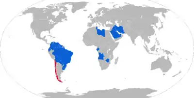 Engesa was able to export Urutus widely on three continents.[11] The rugged nature of the vehicles, as well as the fact that they were technologically simple and straightforward to maintain made them attractive purchases for a number of armies in South America, the Middle East, and Africa.[12] Furthermore, Engesa was financially dependent on the prospect of successful exports; despite the large orders for Cascavels and Urutus placed by the Brazilian Army, it would be unable to sustain production otherwise.[14] The domestic market was simply insufficient to support an armored vehicle industry, so export orders were perceived as helping achieve the economy of scale needed to make Engesa's operations viable.[15] In 1973, Engesa unsuccessfully bid for a contract to develop a new wheeled infantry fighting vehicle for the South African Army.[16] South Africa was the first foreign power to show an explicit interest in the Urutu and even tested a model optimized for southern African conditions as the Vlakvark.[16] Engesa lost the bid to a German firm which produced a prototype of what would later become the Ratel.[16] Its next attempt to market the Urutu on the international market took place in Chile and was more successful.[14] Due to the political isolation of the Chilean military regime, Engesa found it had little competition in selling armored vehicles to that country's armed forces.[14] Chile obligingly placed an order for 37 Urutus in 1975.[11] The importance with which Engesa regarded this order was highlighted by its prioritization of the Chilean purchase in production, with domestic orders to the Brazilian Army being temporarily sidelined.[14] In 1976, more Cascavels and Urutus were delivered to Chile than were in service with the entire Brazilian armed forces at the time.[14] Chile retired its Urutus in 2002 and sold off its entire fleet to an Israeli defense contractor for re-export.[17]