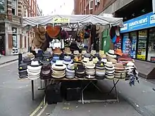 The street was completed in 1710 and it is likely that the market dates from then.[2] Unregulated street markets allowed London to grow explosively in the late 19th and early 20th centuries. The traders could move easily to the new population centres and enabled people to buy provisions without having to travel to the central London wholesale markets. In the early morning traders would load their barrows at the wholesale markets, clean and sort the goods, and then sell them in the new suburban streets. In many cases, the sites of these markets became London's modern high streets.