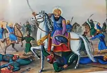 ![]() Guru Hargobind fighting Mughal soldiers | |||||||