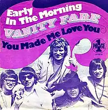"Early in the Morning" is a song by British band Vanity Fare, released as a single in June 1969. It became an international hit, peaking at number 8 on the UK Singles Chart and number 12 on the Billboard Hot 100 and was awarded a gold disc for sales over one million.[1]