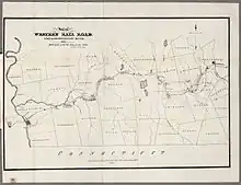 The Boston and Worcester Railroad was chartered June 23, 1831 and construction began in August 1832. The line opened in sections: to West Newton on April 16, 1834; to Wellesley on July 3; to Ashland on September 20; to Westborough in November 1834; and the full length to Worcester on July 4, 1835.[12] The Western Railroad was chartered February 15, 1833 and incorporated March 15, 1833 to connect the B&W to the Hudson and Berkshire Railroad at the New York state line. Construction began in 1837, and the Eastern Division to the Connecticut River in Springfield opened on October 1, 1839. The Western Division, through the Berkshire Hills, opened in sections from both ends from the state line to Pittsfield May 4, 1841, West Springfield to Chester May 24, 1841, Springfield to West Springfield (across the Connecticut River) July 4, 1841, Pittsfield to "Summit" August 9, 1841, and Chester to Summit September 13, 1841.[13]