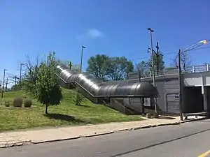 The worst accident in the history of the RTA Rapid Transit occurred just east of the station. On July 8, 1977, two cars collided head-on during single-track operation. The accident occurred at the bridge over East 92nd Street. Both operators and 60 passengers were injured, and both cars were a total loss.[3]: 100–102