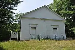 The East Harpswell Free Will Baptist Church is a historic church on Cundys Harbor Road in East Harpswell, Maine. Built in 1843, it is a little-altered modest Greek Revival structure, with a reversed interior layout (with the pulpit at the entrance) that is now extremely rare within the state. It has been used only sporadically since the early 20th century, but is maintained by a local community group. The building was listed on the National Register of Historic Places in 1988.[1]