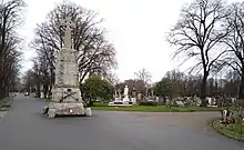 - Stone kerb wall in Soldiers' and Sailors' Plot, listing 97 Commonwealth servicemen buried in it in World War I.[1]