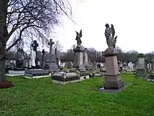 The cemetery was founded in 1871 and laid out in 1872 to meet the increasing demand from the eastern suburbs of London. The first interment was in August 1872 and the cemetery remains open. The cemetery covers 33 acres (0.13 km2) next to the Greenway and has two Gothic chapels built at the end of the 19th century that remain in use: a burial chapel dedicated to Church of St Michael and All Angels, and a non-denominational chapel for cremations. A total of 244 Commonwealth service casualties from World War I and 132 from World War II are buried in this cemetery, in addition to three Dutch merchant seamen from the latter war.[1]