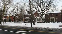 The East North Broadway Historic District is a historic district in Clintonville, Columbus, Ohio. It was listed on the National Register of Historic Places in 2010.[1] The linear district spans the east and north sides of East North Broadway, encompassing 117 primary and 86 secondary buildings, mostly garages and outbuildings. Most of the contributing structures are single-family houses, though there is an office building, school, and two churches. There is a diverse array of architecture styles represented, including Queen Anne, Colonial Revival, English Revival, Dutch Colonial Revival, Georgian Revival, Romanesque Revival, Craftsman, Bungalow, and mid-century modern.[2]