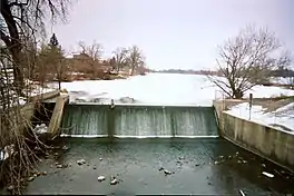 ![]() In winter. Picture taken from the Oakland Avenue bridge over Dobbins Creek looking north-northeast. | |