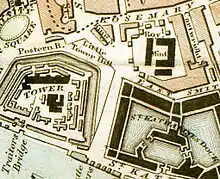 This pattern of diversity continued, during the late 16th and early 17th centuries the parish of St Botolph without Aldgate as a whole (both the Portsoken and East Smithfield areas) is recorded as having a population of at least 25 people identified as "blackamoors."[8][9]