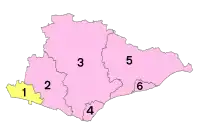 The area of East Sussex County Council's jurisdiction is divided into five local government districts. Three are large rural districts (from west to east): Lewes, Wealden, and Rother. Eastbourne and Hastings are mainly urban areas. The rural districts are further subdivided into civil parishes.[10]