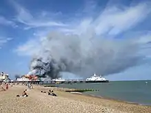 - ↑ "Fire rips through Eastbourne Pier". BBC News. 30 July 2014. Retrieved 30 July 2014.
