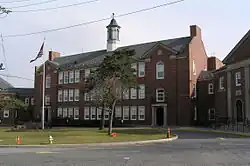 The Wilmot School near the corner of White Plains Road and Wilmot Road was a K-8 school that serviced the north end of town after 1909. When the Greenvale elementary school was erected in 1936, the Wilmot School was converted into Eastchester's Town Hall. In 1964, the clubhouse of the Oak Ridge Country Club was converted into the present Town Hall, and the Wilmot School was torn down. The Cooper School, located in the northern end of town, was an elementary school built in the 1920s. It was demolished in 1980 and the land sold to a private housing developer. The original schoolyard lives on as Cooper Field, leased to the town of Eastchester at the rate of one dollar per year. The park is also referred to as Vaccaro Park, as it was originally donated by Carmela Vaccaro[7] the matriarch of one of the largest and longest standing families in Eastchester. The Anne Hutchinson School, another elementary school, was built in 1953, and additional classrooms constructed several years later. A primary wing was built at the Greenvale School in the 1950s.[8]