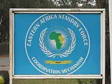 The Eastern Africa Standby Force (EASF), formerly Eastern Africa Standby Brigade (EASBRIG), is one of the five regional forces for Peace Support Operations (PSOs) of the African Standby Force, consisting of military, police and civilian components. EASF constitutes the regional operational arm of the peacekeeping elements of the African Peace and Security Architecture, put in place by the 2002 Protocol Relating to the Establishment of the Peace and Security Council of the African Union.[1][2]