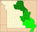 The Southeastern division is based at Cape Girardeau. Its courthouse is named for Rush Limbaugh Sr.[4] That division's jurisdiction covers Bollinger, Butler, Cape Girardeau, Carter, Dunklin, Iron, Madison, Mississippi, New Madrid, Pemiscot, Perry, Reynolds, Ripley, Sainte Genevieve, Scott, Shannon, Stoddard, and Wayne counties.