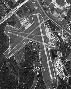 The first control tower was erected at the Airport in 1952 and a commercial passenger terminal was constructed in 1957. Work began on an extension of Runway 16-34 (now 17–35) to its present 7,000-foot (2,100 m) length in 1984. At the same time the parallel taxiway to Runway 16-34 was extended.