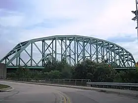 The overall length is 1,020 feet (310 m). The four-lane facility has a roadway width of 40 feet (12 m). There are 8-foot (2.4 m) concrete pedestrian sidewalks outside the trusses on each side. The bridge is the 9th-longest (main span) simple truss and 9th-longest (main span) steel truss in the United States. When it was constructed in 1938, the bridge was the longest steel truss in the United States, a distinction it held for 19 years.