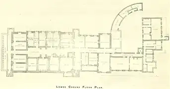 Between 1793 and 1799 the original manor house was replaced by one built in the neo-classical style for George Finch-Hatton and his wife Lady Elizabeth Murray, daughter of 2nd Earl of Mansfield to designs by Robert Adam's former draughtsman, Joseph Bonomi (1739–1808).[5] The new Bonomi designed house was built on a magnificent scale, with an imposing frontage, suites of splendid state apartments with accommodations for a large number of guests, beside the tastefully arranged garden, the interior resembles Bonomi and Robert Adam's famous decors.[4]
