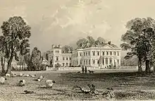 David Barclay acquired Eastwick Park in 1833, by purchase from the estate of Louis Bazalgette, who died in 1830.[14][15] The sale followed a chancery case involving Frances Bazalgette, the widow, and Evelyn, son of Louis.[16] Barclay had work done on the house, possibly involving Decimus Burton. He rented it out from 1847, when he was experiencing financial troubles. But his son Hedworth David Barclay occupied it; and after his death it was sold by his son Hedworth Trelawny Barclay, in 1880.[17]