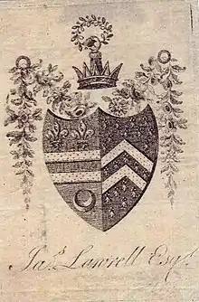 James Lawrell senior, an engineer of the East India Company who had become a financial official in the Bengal Presidency,[2] settled at Eastwick. He arrived in Bengal in 1758, and left the Company's service in 1775.[3] He married in 1776 Catherine Holme Sumner, sister of the politician George Holme-Sumner, whose father William Brightwell Sumner had purchased Hatchlands Park, not far away from Eastwick Park, in 1768. He died in 1799.[4][5][6]