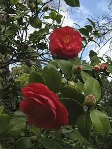 | Somersby[58] | 1944 | C. japonica | Ruby red with darker edges, double rose to peony form | Yes |