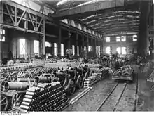 Walter Rathenau played the key role in convincing the War Ministry to set up the War Raw Materials Department (Kriegsrohstoffabteilung—"KRA"); he was in charge of it from August 1914 to March 1915 and established the basic policies and procedures. His senior staff were on loan from industry. KRA focused on raw materials threatened by the British blockade, as well as supplies from occupied Belgium and France. It set prices and regulated the distribution to vital war industries. It began the development of ersatz raw materials. KRA suffered many inefficiencies caused by the complexity and selfishness KRA encountered from commerce, industry, and the government.[68][69] Some two dozen additional agencies were created dealing with specific products; the agencies could confiscate supplies and redirect them to the munitions factories. Cartels were created and small firms merged into larger ones for greater efficiency and ease of central control.[70]