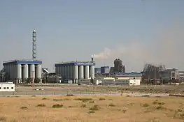 The industry of Ganja is composed of extraction and processing industries. There are also enterprises of production of electrical devices, communications equipment, and enterprises for repairing cars and agricultural machinery operating within the machinery industrial sector which are considered as the leading branches of heavy industry.[3][4] Ganja Automobile Plant meets the important part of the local demands of Agriculture within the country.[3] Iron ore, alunite, limestone, marble, gypsum, and zeolite extracting from the districts of Ganja-Gazakh is mainly produced by enterprises that are located in Ganja.[3][4] Ganja aluminum plant, for instance, is specialized in production of aluminum oxide (alumina), primary aluminum and semi-final aluminum products (such as aluminum sheet – in list and roll forms, both sides painted sheet and lists) of bauxite and alunite ore.[5] Electroenergetics constitute another branch of heavy industry. Ganja heating and power station are two main examples of this area.[6] Chemical industry products like sulphuric acid, potassium fertilizer are also manufactured by large plants operating within the city. Moreover, porcelain earthenware plate production exists in Ganja.[6]