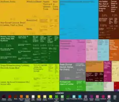 Export goods | Cereals and cereal-based products; seeds and oleaginous fruits; electrical machines, appliances and parts thereof; vegetable fats and oils − fixed, crude, refined or fractionated; vegetables and fruits; clothing and accessories; furniture and parts thereof; alcoholic and non-alcoholic beverages; yarns, fabrics, textiles and related products; road vehicles; Others.[15][18][19] |