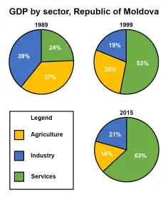- ↑ "Moldova: Distribution of gross domestic product (GDP) across economic sectors from 2011 to 2021". statista.com. Statista. Sep 8, 2022. Retrieved Oct 15, 2022.