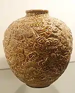 Natural disasters such as typhoons, drought, floods and famines were frequent.[6] Severe famines struck north-central Vietnam in 1823–24, the Red River Delta in 1827, central Vietnam in 1835 and 1840, northern Vietnam in 1841. Dams and river dikes were neglected by the court by 1870s.[11] Cholera epidemics affected national-wide famines occurred in 1806, 1820, late 1840s and 1860–70s.[12] Locusts plagued provinces of Son Tay and Bac Ninh in 1854.[11] 200,000 people died during the plague of 1820, and around 800,000–1,000,000 perished in the cholera outbreak of 1847–1849.[13]