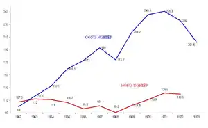 GDP per capita of the North and South Vietnam (unit: USD)[12]