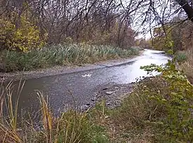The Ecorse River is an 18.8-mile-long (30.3 km)[2] river in southern Michigan. Because of its small size, it is often identified as Ecorse Creek. It flows through the Downriver section of Metro Detroit, and is a tributary of the Detroit River. The early French settlers named it the Rivière aux Écorces ("bark river").[3] They named the river after the custom they observed of the local Native American tribe, who wrapped their dead in birch or elm bark, and buried them at the mouth of the river. The river has two branches, which meet at Council Point Park in the city of Lincoln Park, where chief Pontiac held a council in 1763 before attacking Fort Detroit.