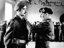 Lt. E. Crush Royal Engineers receiving the Military Cross from Field Marshal Montgomery