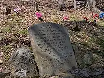 The earliest Euro-American settlers in the DeKalb area arrived in the late 1790s and established the town of Liberty just west of the modern park.[6] Over the years, several families settled in the hollows and valleys of what is now Edgar Evins State Park and adjacent lands that would eventually be inundated by Center Hill Lake. One such settler, Alexander Dunham (1826–1878), whose family arrived in the area in the 1830s, is buried on a hill within the park that overlooks Center Hill Lake. Dunham's son lived near the present site of Center Hill Dam.[7]