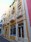 Edificio Patio Español (Spanish for 'building of the Spanish courtyard'), also known as La Filarmónica Building, is a mixed-use building located in the Old San Juan historic district of the city of San Juan, Puerto Rico.[1] It was designed in a Spanish Mission Revival-style by civil engineer Eduardo Fossas López and built in 1937 with the purpose of refilling an emptied lot of the old city with a structure that resembled and referenced the Spanish Colonial architecture around it. This emptied lot was formerly the site of a meeting house for a group called Sociedad La Filarmónica ('Society of the Philharmonic'), a scholarly club that was founded by Manuel de Elzaburú and Alejandro Tapia y Rivera with the intention of promoting cultural activities in the city of San Juan. The Patio Español building was added to the National Register of Historic Places in 2005.[2]
