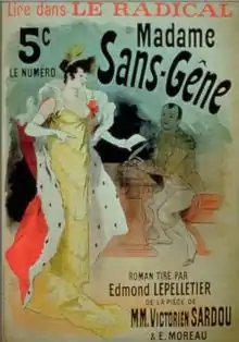 - Edmond Lepelletier (1910), Madame Sans-Gêne (roman tiré de la pièce de MM. Victorien Sardou et Émile Moreau), Paris: J. Tallandier, p. 128