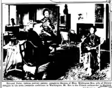 After Dulac separated from his wife in 1924, he lived with British writer Helen Beauclerk until his death in 1953. Dulac frequently used her as a model for his illustrations, and illustrated her two novels, The Green Lacquer Pavilion (1926) and The Love of the Foolish Angel (1929).[3][4][6]