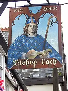 Around 1414, Lacey was appointed Dean of the Chapel Royal, accompanying King Henry V to the Battle of Agincourt in 1415.[5] He was elected to the see of Hereford between 21 January and 17 February 1417 and consecrated on 18 April 1417.[6] He was then translated to the see of Exeter on 15 July 1420.[7] While bishop at Exeter, Lacey promoted the cult of the Archangel Raphael, proclaiming the feast in his diocese in 1443, and working throughout England to institute the cult.[8]
