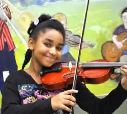 ![]() An Education Through Music-Los Angeles student posing with her violin | |