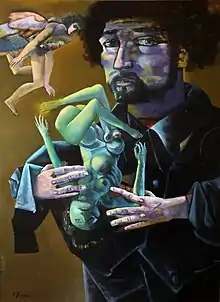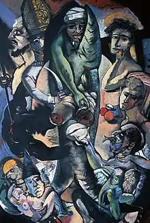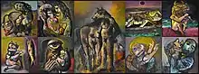 In 1956, Boccia began his multi-panel paintings, which were purchased after completion, among others, by Morton D. May between 1956 and 1977.[10][11][12][13][14][15] Some of his most noteworthy series of multi-paneled paintings consist of up to nine panels. Other paintings remained hidden in his studio for over fifty years and were uncovered recently by a research project led by the late artist's trust.[16][17][18] Boccia's work shows the influence of Max Beckmann, and he was well aware of the older artist's work through May's collection.[19]