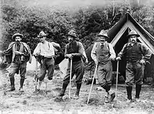 Mountaineers in the Tasman Valley of New Zealand (from left): Matthias Zurbriggen, Fizgerald, Arthur Ollivier, George Edward Mannering and Jack Adamson