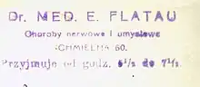In addition to neurology, Flatau was a psychiatrist.[21][41] Irena Solska, famous Polish actress, describes in her memoirs that playing Maria, a mad wife in nondivine comedy of Zygmunt Krasinski around 1920, she visited the psychiatric hospital (ward) of Edward Flatau.[42] Another of his patients was well-known Polish poet Jan Lechoń.[43][44] In the story of Isaac Bashevis Singer, "The Power of Darkness",[45] Flatau is even called to cure the demons. Excerpt from Singer's story reads: "The word soon spread through Krochmalna Street and the surrounding streets that a dybbuk had settled in Tzeitel's ear, and that it chanted Torah ... A Warsaw nerve specialist became interested in the case – Dr. Flatau, who was famous not only in Poland, but [also] in all Europe and maybe in America, too. And an article about the case appeared in a Yiddish newspaper. The author borrowed its title from Tolstoy's play The power of darkness."