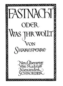 Johnston also created a blackletter-influenced design for a 1929 German edition of Hamlet.[12]