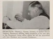 Born in 1894, Edward Lloyd Hyman began his career as a theater manager for the Victoria Theater in his hometown of Buffalo, New York, in 1916.[2] He gained popularity for his elaborate productions of film during the silent era, most notable for his musical accompaniments that included: overtures, prologues, interludes, and countless other vocal and dance numbers. His success at the Victoria not only transferred, but increased when he was hired to work at the prestigious Strand Theatre, Brooklyn in 1920. He was later named the Vice President of Paramount Pictures after their historic merger with the American Broadcasting Company. He was responsible for acquisitions and dealt frequently with Walt Disney Productions.