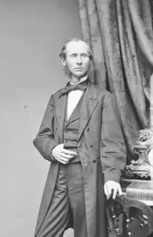 In Thaddeus Stevens' firm in Lancaster, McPherson became a Whig. McPherson left the law practice due to illness and moved to Harrisburg, editing the Harrisburg American in 1851, and the Lancaster Independent Whig (1851–1854).[2] In 1855, he started and edited an American Party paper, the Pittsburgh Evening Times.[3] He moved back to Gettysburg the next year and resumed his legal career. He inherited his father's farm west of town along the Chambersburg Turnpike in 1858[4] and was elected to the 36th and 37th United States Congresses (1859 – March 1863, Republican). He was a member of the Republican National Committee in 1860.
