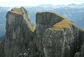 The Eggstock (2,455 m) is a mountain of the Schwyzer Alps, located on the border between the Swiss canton of Schwyz and canton of Glarus, north of Braunwald. It lies on the range east of the Bös Fulen, between the valley of Bösbächi and the cirque of Braunwald and is composed of three summits: the Hinterer Eggstock (2,455 m), the Mittlerer Eggstock (2,436 m) and the Vorderer Eggstock (2,449 m).