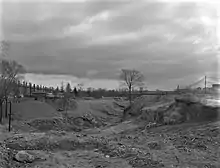 Construction of Eglinton across the Don Valley gap in 1956, as seen from east of Brentcliffe Road