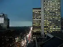 Eglinton Avenue on a rainy day, with Canada Square and the Yonge Eglinton Centre